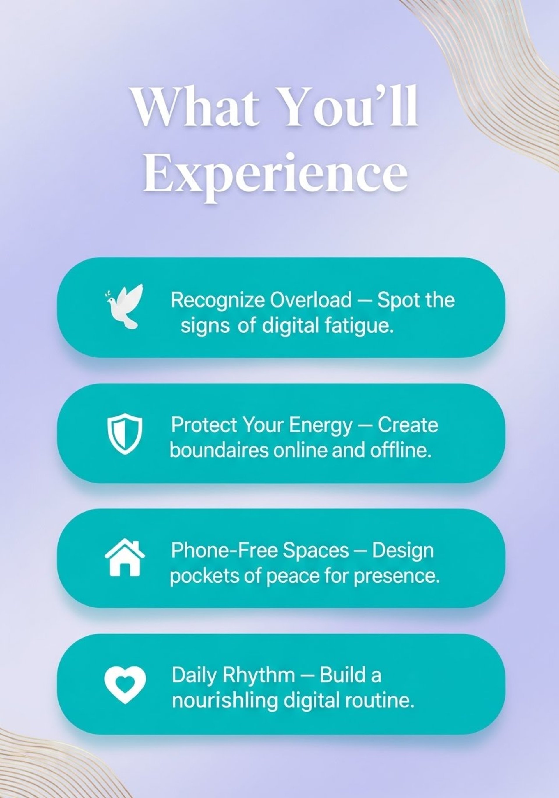 Your phone doesn’t need to control your peace. This gentle, guided cleanse helps you clear digital clutter, calm your nervous system, and realign with your authentic rhythm — in just seven intentional days.